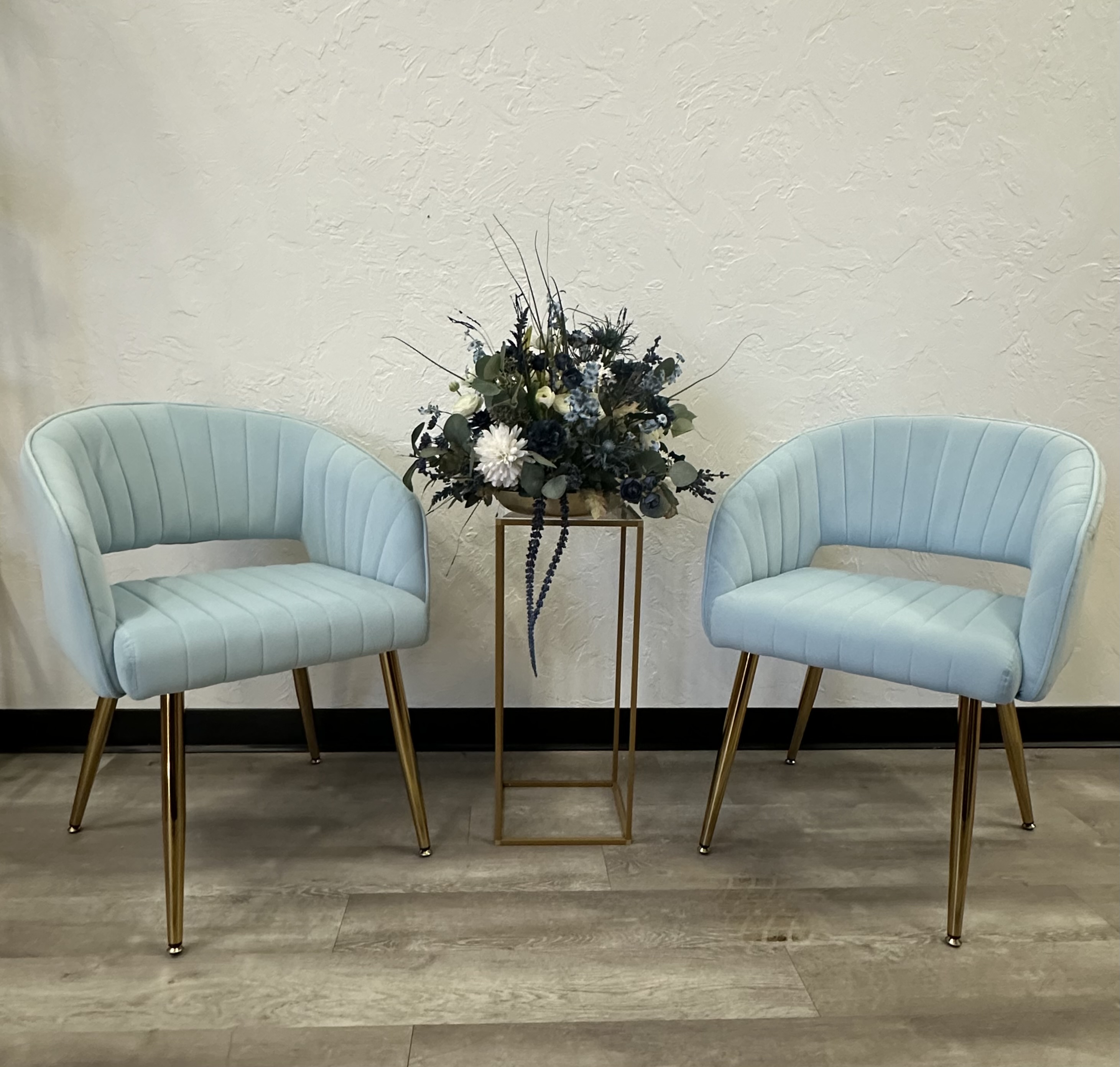 Rentals Enjoy browsing a sample of our inventory online, but we have so much more to show you in person! Book a consultation to discuss and view all your options. Book a Consultation Rentals Chairs Baby Blue Modern Chair With Gold Legs "The Wilkes" Search SharePin1KShare1K Shares