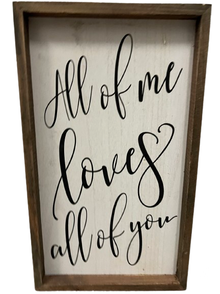 Rentals Enjoy browsing a sample of our inventory online, but we have so much more to show you in person! Book a consultation to discuss and view all your options. Book a Consultation Rentals Signs White With Wood Frame "All Of Me Loves All Of You" Search SharePin1KShare1K Shares
